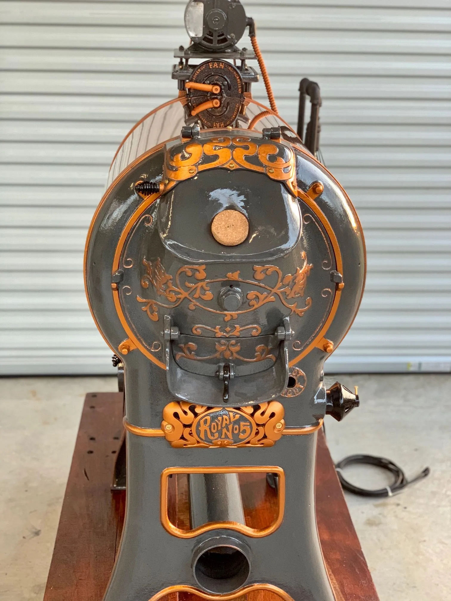 I am working on a Royal#4 but need to upgrade as the 4 is too small . If this unit is still available let me know.1914 Royal No. 5 Coffee Roaster