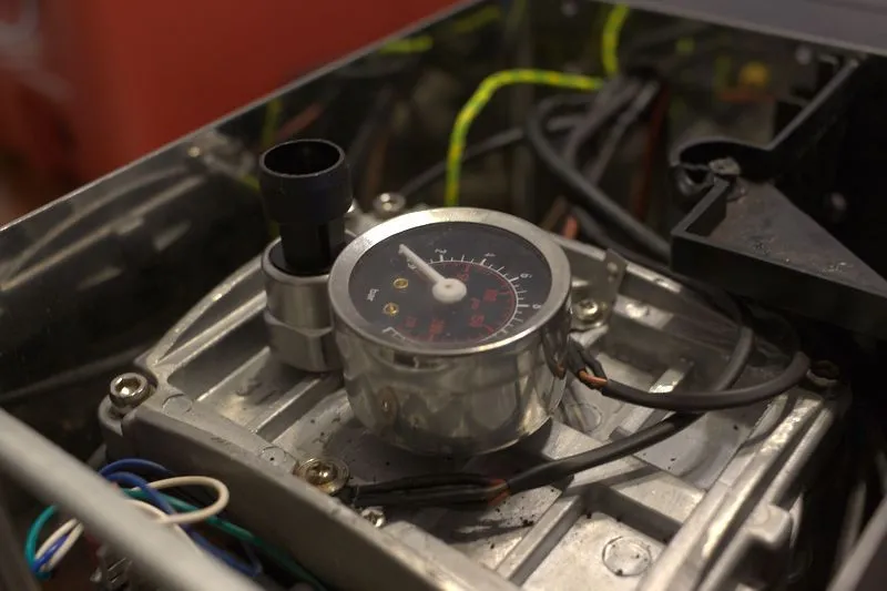 And here's a shot of the analog pressure gauge as seen when the machine is closed: