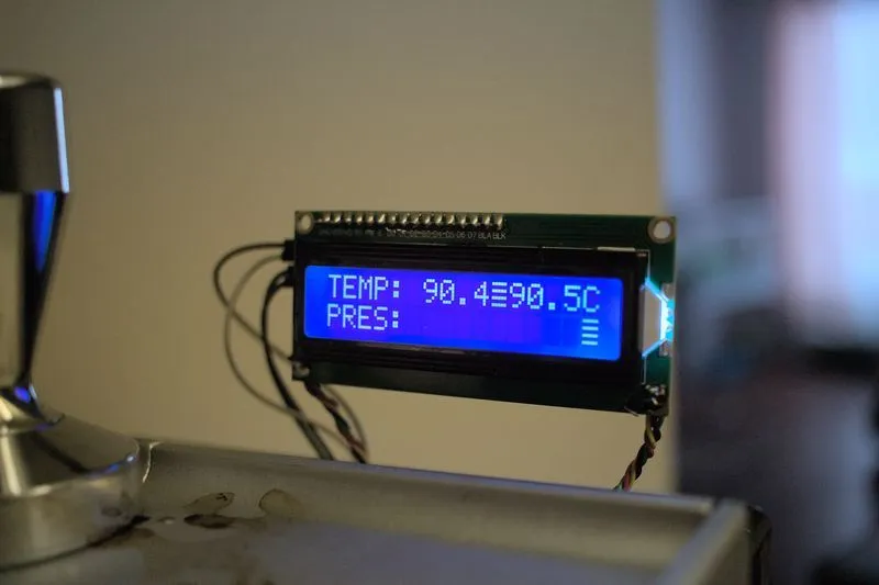 On the two lines, I display the current temp, and the target temp. I have some trouble with the custom characters in these shots but there's a coffee mug that should appear when the current and target temperatures are close. Anyhow, it's pretty nifty to see these parameters change over time...