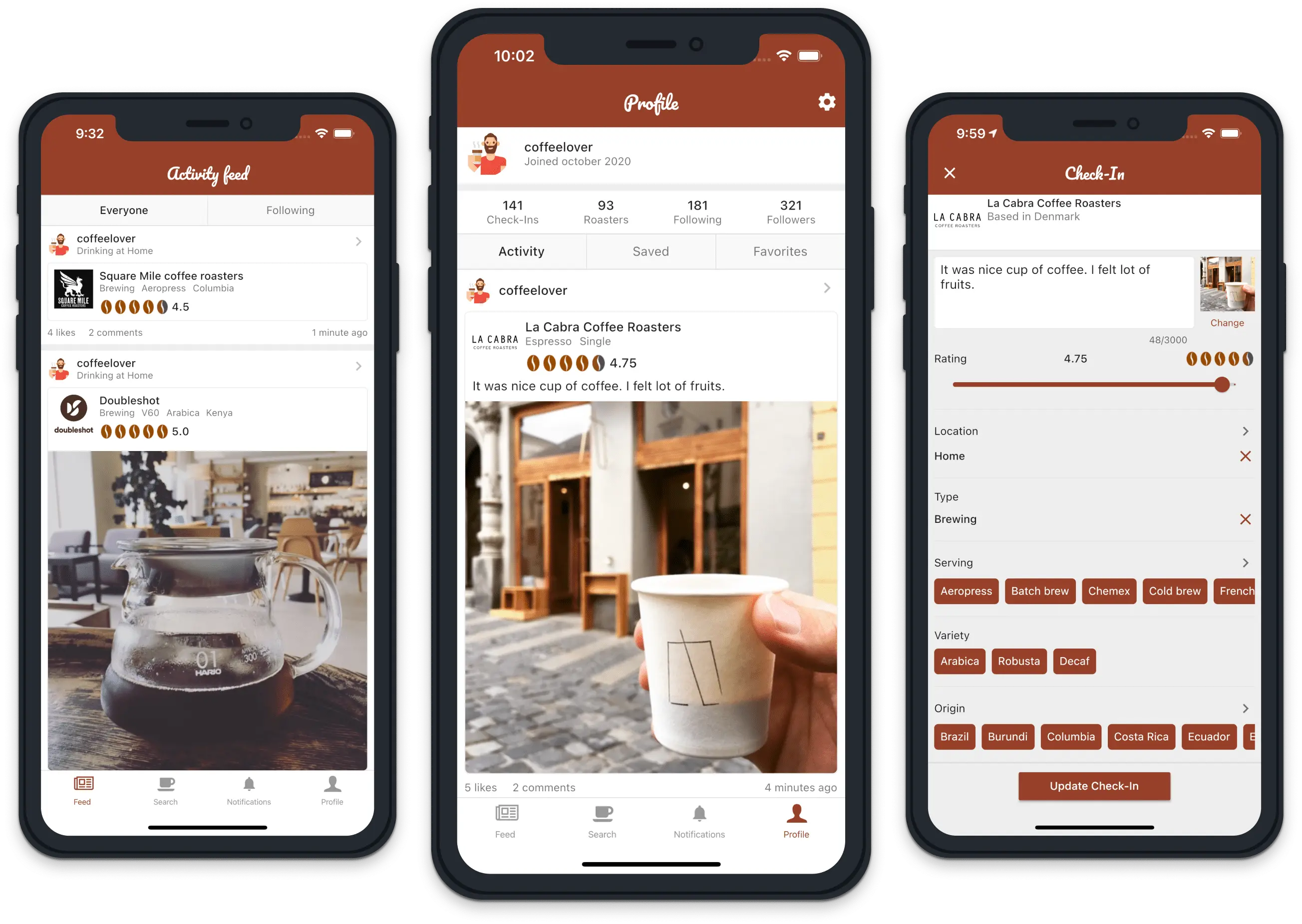 The application is something like a diary - you can check a coffee roaster, provide some taste notes and share it with friends. You can also discover new coffee roasters and experiences.